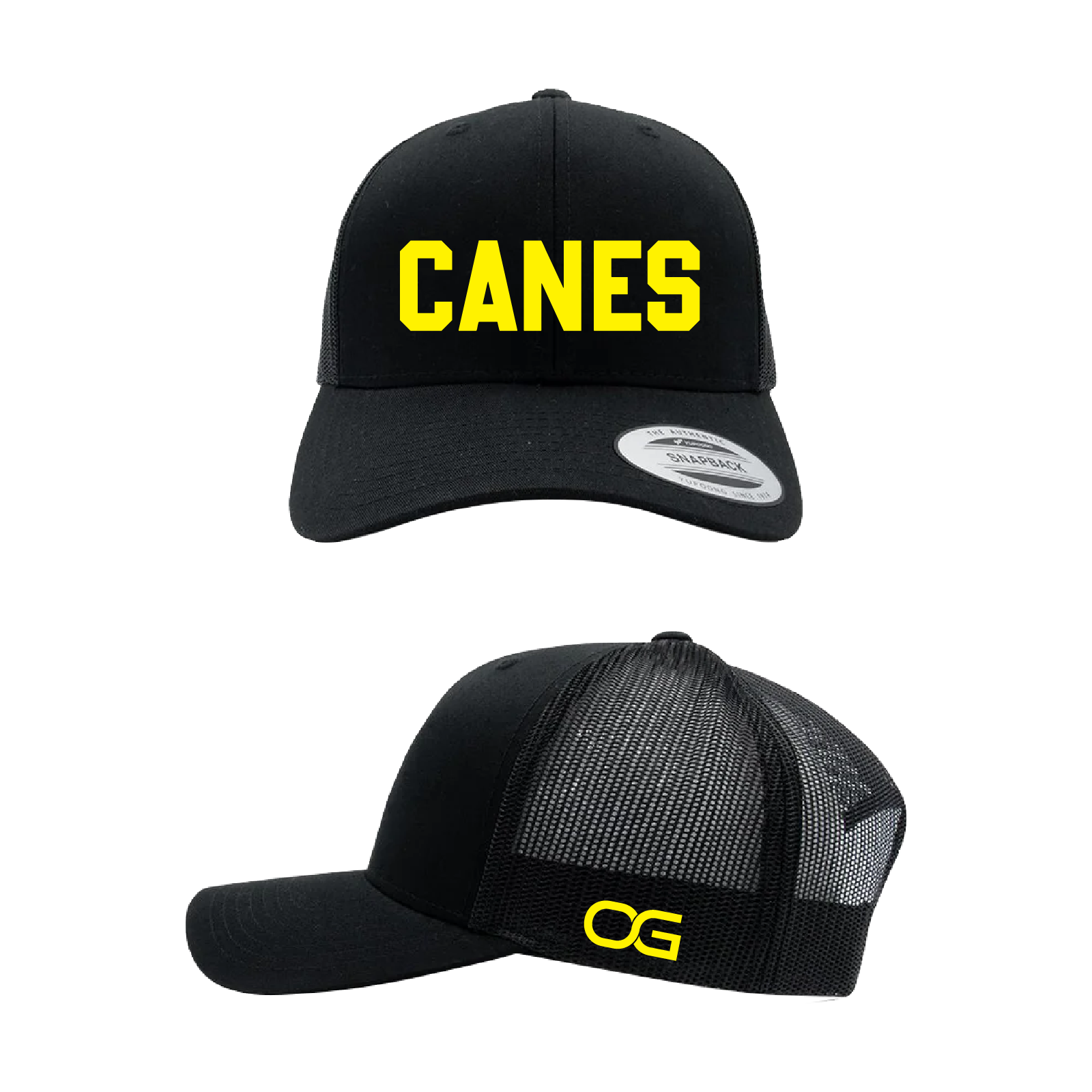 Canes Black with Yellow FlexFit Trucker Cap OSFA